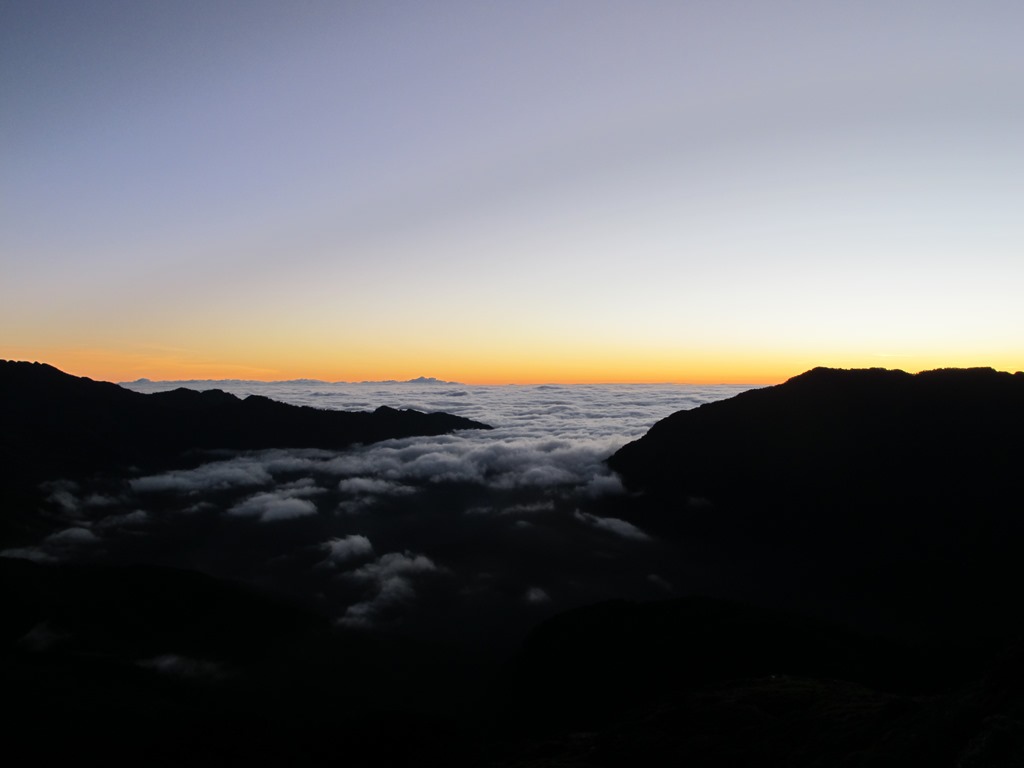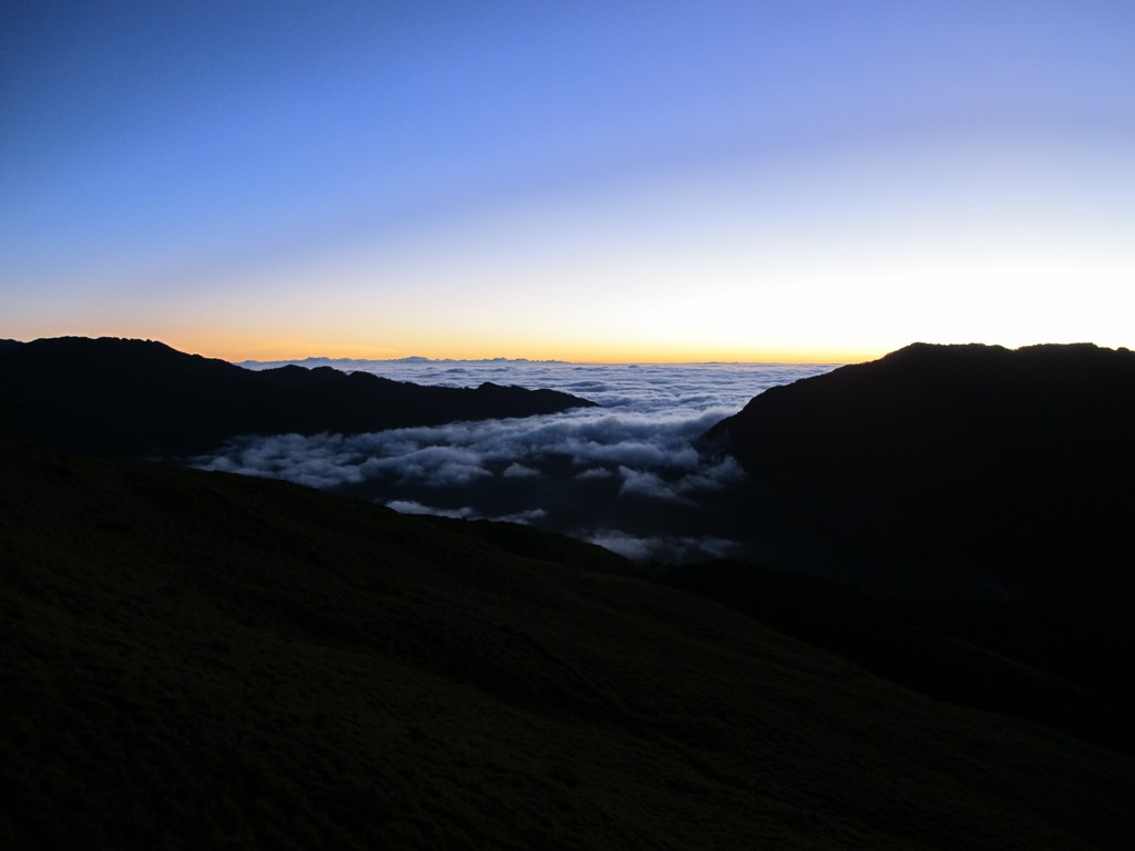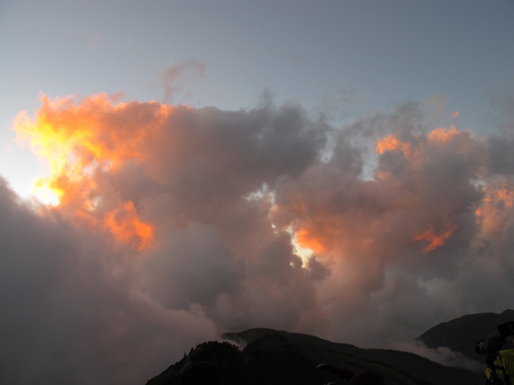 儘管合歡山主峰,是群峰中最適合觀賞夕陽的地方,但可惜的是,當天傍晚的天候狀況並不好,雲霧太厚,遲遲散開不了,最後只能眼睜睜地望著無緣一見的夕陽,在雲和山的彼端,悄悄落下。