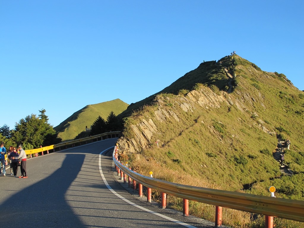 合歡尖山的步道,分成前後兩面,可以分別從不同的方向往上攻頂,一面是照片中合歡山遊客中心這邊,而另一面則是在石門山登山口對面的停車場。若是從合歡山遊客中心後面上山,坡度相當陡峭,且為石頭路型的自然步道,相對來說比較不好走,而另一邊則是架設好的木造階梯,雖然同樣陡峭,但至少相對簡單。個人建議,從石門山看完日出回程時,可以順便從另一邊上山攻頂,然後再往合歡山遊客中心的方向下山,征服這座海拔不低的合歡尖山,這樣不只比較輕鬆,也可以少掉不少回程的道路。