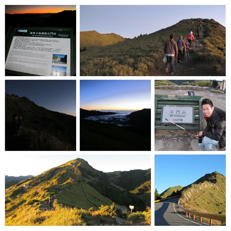 為了欣賞日出,隔天一大早天還沒亮,我們便動身往石門山出發。石門山登山口,位在台14甲線道路旁邊,一路走來,沿路上已經站著不少位等著看日出的遊客,因為這樣,還差點錯過了登山口。從登山口進去,一開始步道有點抖,會走得有點喘,但在過了這段以後,就幾乎都是緩坡向上,不知不覺就抵達石門山最高點了。至此,合歡山第二座百岳,攻頂成功。