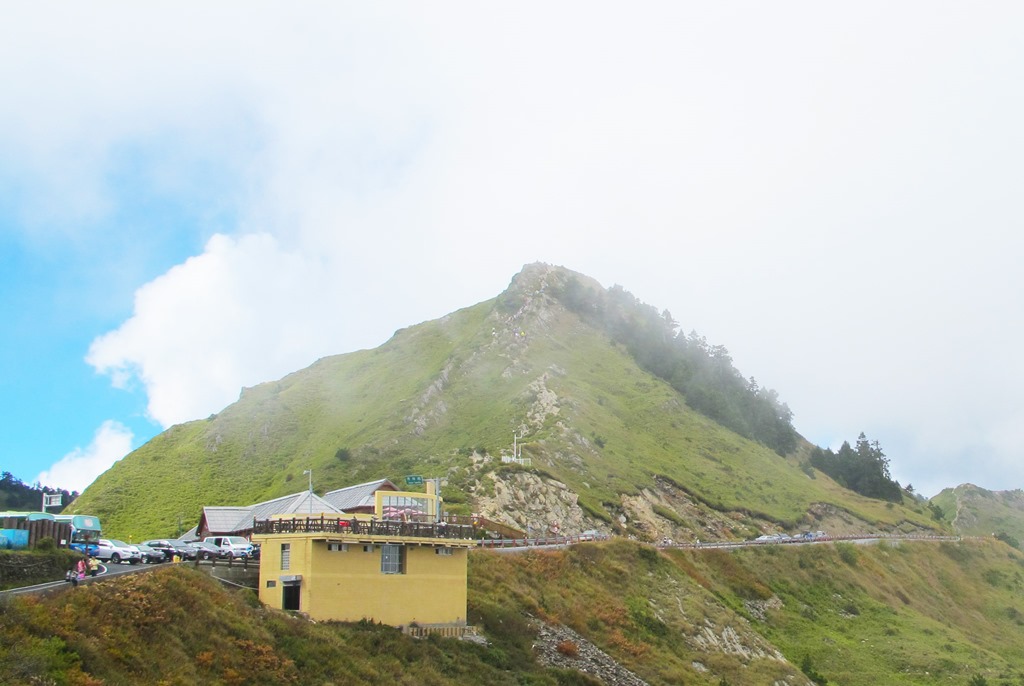 抵達松雪樓時,時間才剛過中午,在櫃檯辦理好入住手續後,估計著離傍晚還有大把時間,於是便把行李寄放在松雪樓大廳,出發前往合歡主峰。下午的合歡山雲霧繚繞,間或露出一點陽光,我們先到合歡山遊客中心,參觀並收集合歡山附近的資訊,然後才徙步往武嶺前進。往武嶺的路上,雖然得走在道路旁邊,但其實並不危險,以兩車併行的角度來看,是有點窄,不過這種情況並不頻繁,所以尚能接受,反而對徙步者考驗比較大的,是這一段的上升坡度不小,在真正登山前會先消耗掉不少體力。