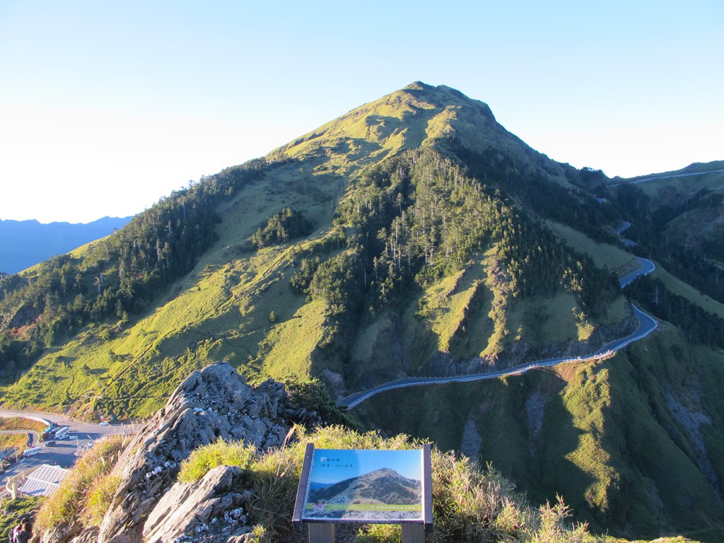合歡主峰,是我們這次行程中,第一個造訪的百岳。雖然名為主峰,但其實就相對高度來說,並不是群峰中最高的,反而位居第三,但是就登山步道的維護與修繕程度來說,的確是裡面最完善,同時也最觀光化的。遊客僅需將車子停在武嶺,然後再徙步走到主峰登山口附近,便可以沿著修繕好的緩坡步道一路向上,大約一個小時的時間,便會到達主峰最高點。