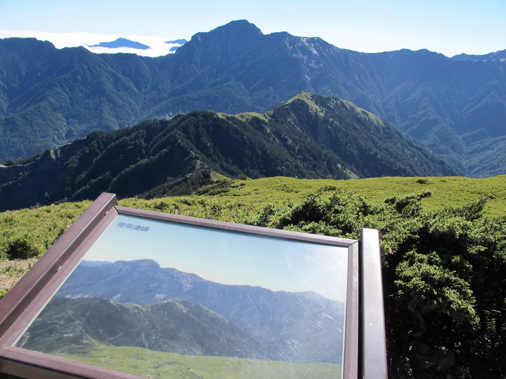 合歡東峰上的視野,也相當地不錯,往東是奇萊連峰,往北有石門山與合歡北峰,往西則是合歡主峰,壯闊的景色,讓人感到心曠神怡。