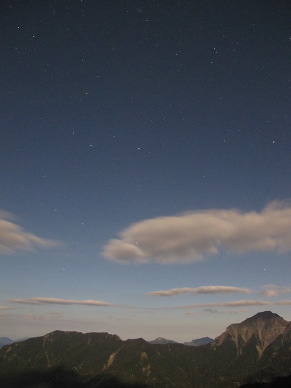 在合歡山上住了三個夜晚,但其實只有最後一晚,才有出去攝影,其餘的兩晚,第一天打算睡充足點,以對抗高山症,第二天則是為了隔天的北峰西峰之行,要養足精神備戰,因此只有隔天準備回山下的第三天晚上,才有餘力外出拍攝星空。兩點半被鬧鐘叫醒,起床梳洗並吃個泡麵當熱呼呼的早餐,不得不說,在寒冷的高山上享用泡麵,真是莫大的享受,接著三點準時出發,慢慢往旁邊的合歡東峰移動,希望能透過登高望遠,帶來更遼闊的視野。為了避免流汗,還有減緩西峰長征所帶來的痠痛,一路上慢慢地走,中間還停留了一下,坐在長椅上拍攝了下圖左的景色,這一趟夜路,總共花了我一個半小時,才抵達最上方,而前兩天同樣的路程,只花了不到一半的時間。上山這段期間,仍然有雲層在空中陸陸續續移動,莫約到了五點,天色開始逐漸變亮,而過了五點半後,已經看不到大部分的星星了,只好意猶未盡地結束攝影,等待接下來合歡東峰上的日出。