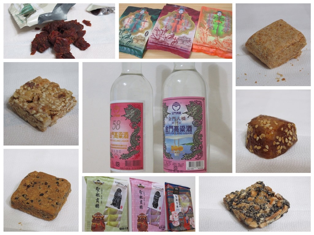 照片說明:金門特產品,金門高粱、金門貢糖、牛肉乾