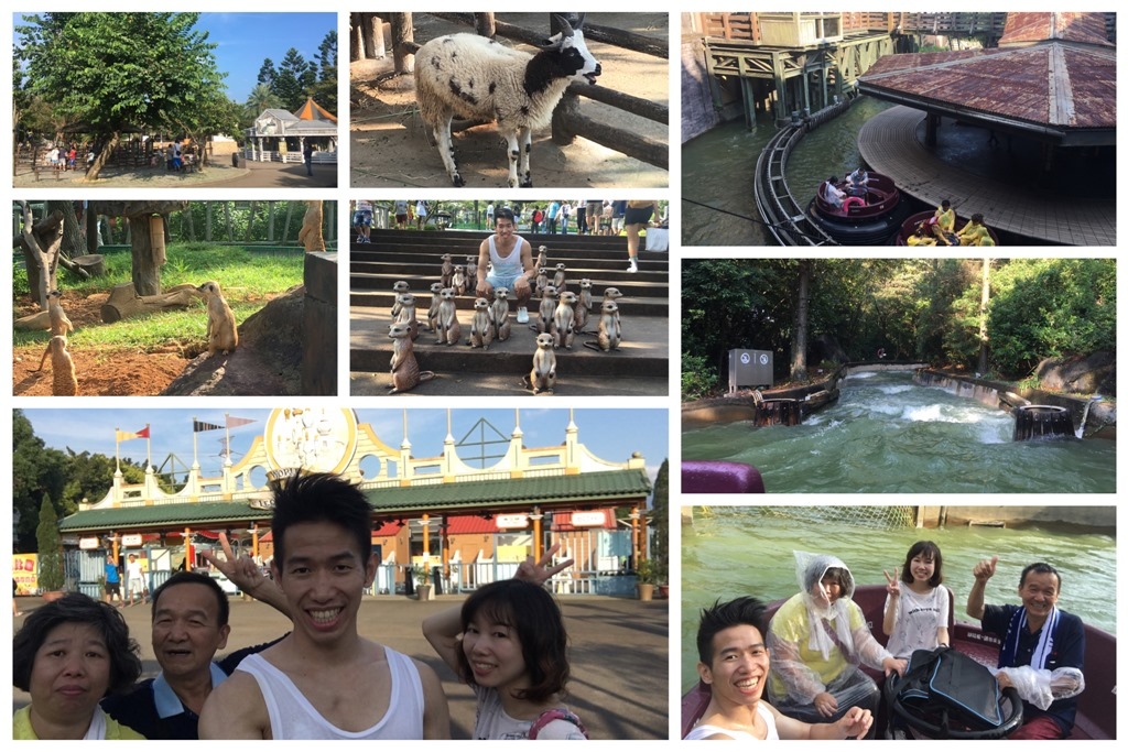 接下來我們漫步到另一個園區非洲部落,看看小動物們,並作為飯後散步與休息的地方。在這邊第一次看到狐獴,超可愛的,讓人聯想到動畫獅子王裡面的丁滿,而且它們時不時會站立觀望群眾,超擬人的,實在是相當特別,讓人相機快門完全停不下來,最後階梯上還有雕製的狐獴可供拍照,這畫面實在是太可愛了阿阿阿。走出這地方後,看著時間還剩下不少,於是揪著眾人趕緊到美國大西部的急流泛舟,乘坐最後一次遊樂設施。笨重地提著餐盒進去船裡,並拿著輕便雨衣覆蓋避免進水,但與此同時,我就照顧不到我自身了,哈,儘管從頭到尾我都很小心翼翼地避免濕身,但一場突如其來的砲擊,再加上無法躲避的瀑布,還有不時濺上來的水花,讓我上半身加褲子還是濕透了,幸好鞋子部分有保護住,哈。不得不說,臨時換來的自拍棒還真是好用,只可惜怕手機進水不敢多用,不然一定能用這個在急流泛舟時拍出不少照片。總而言之,真是一場歡樂的全家遊戲體驗。